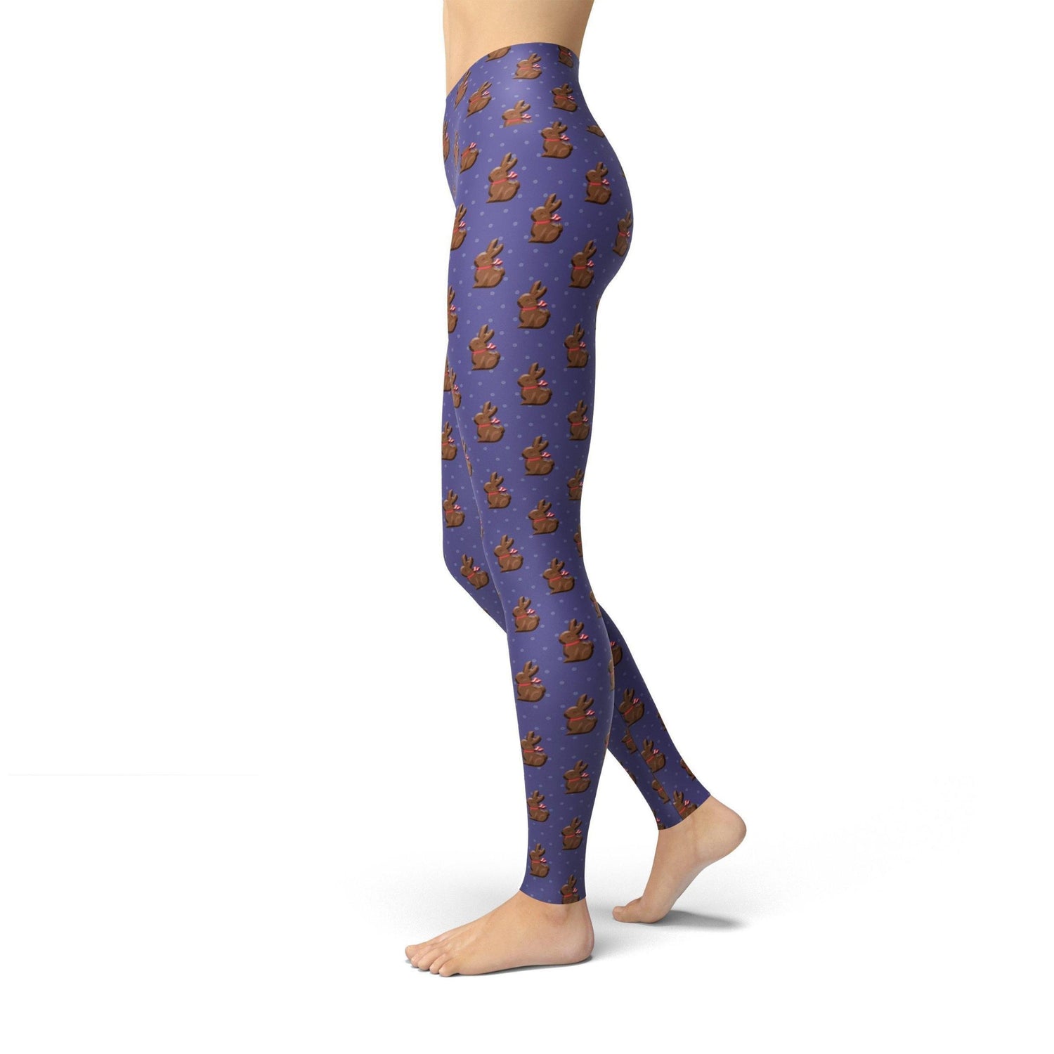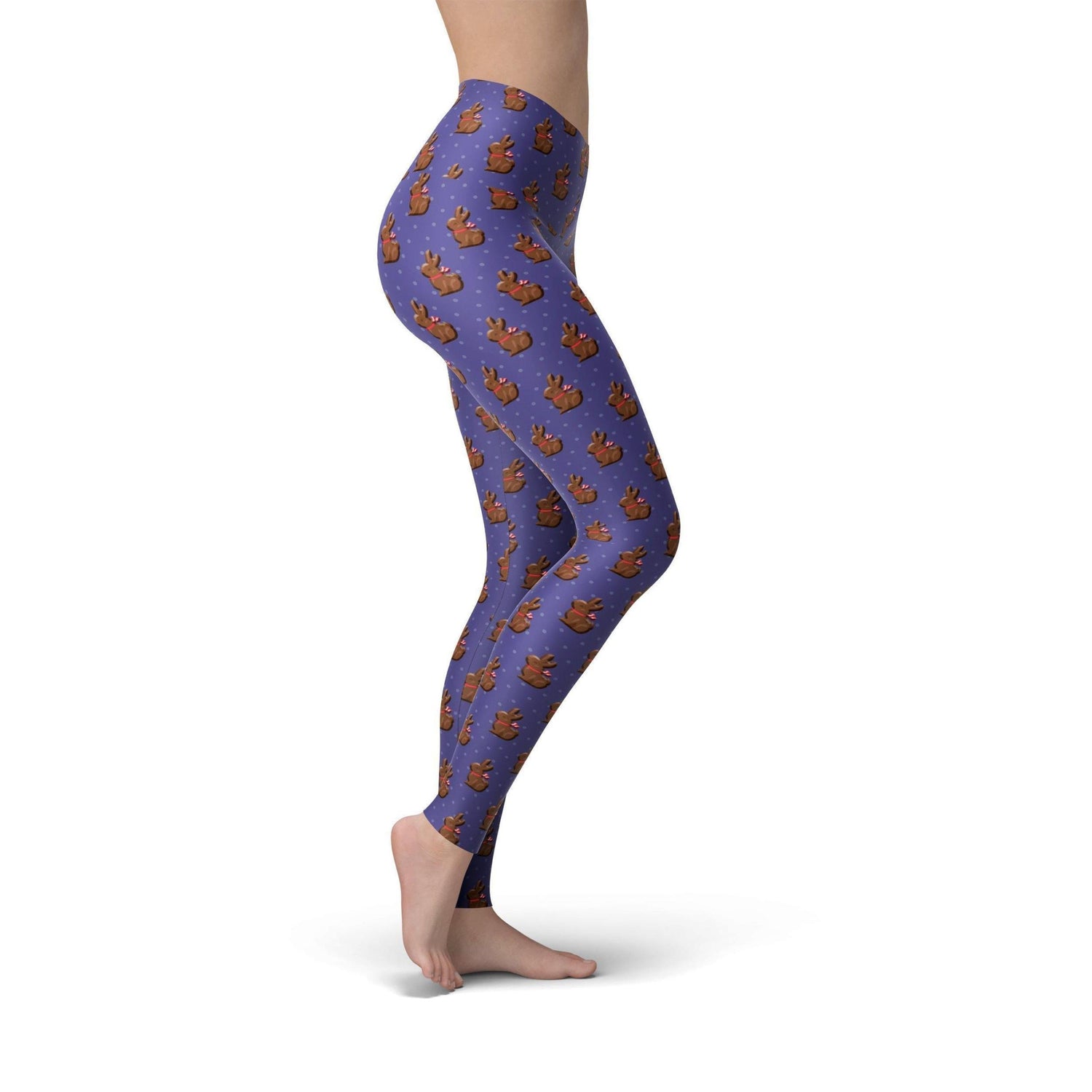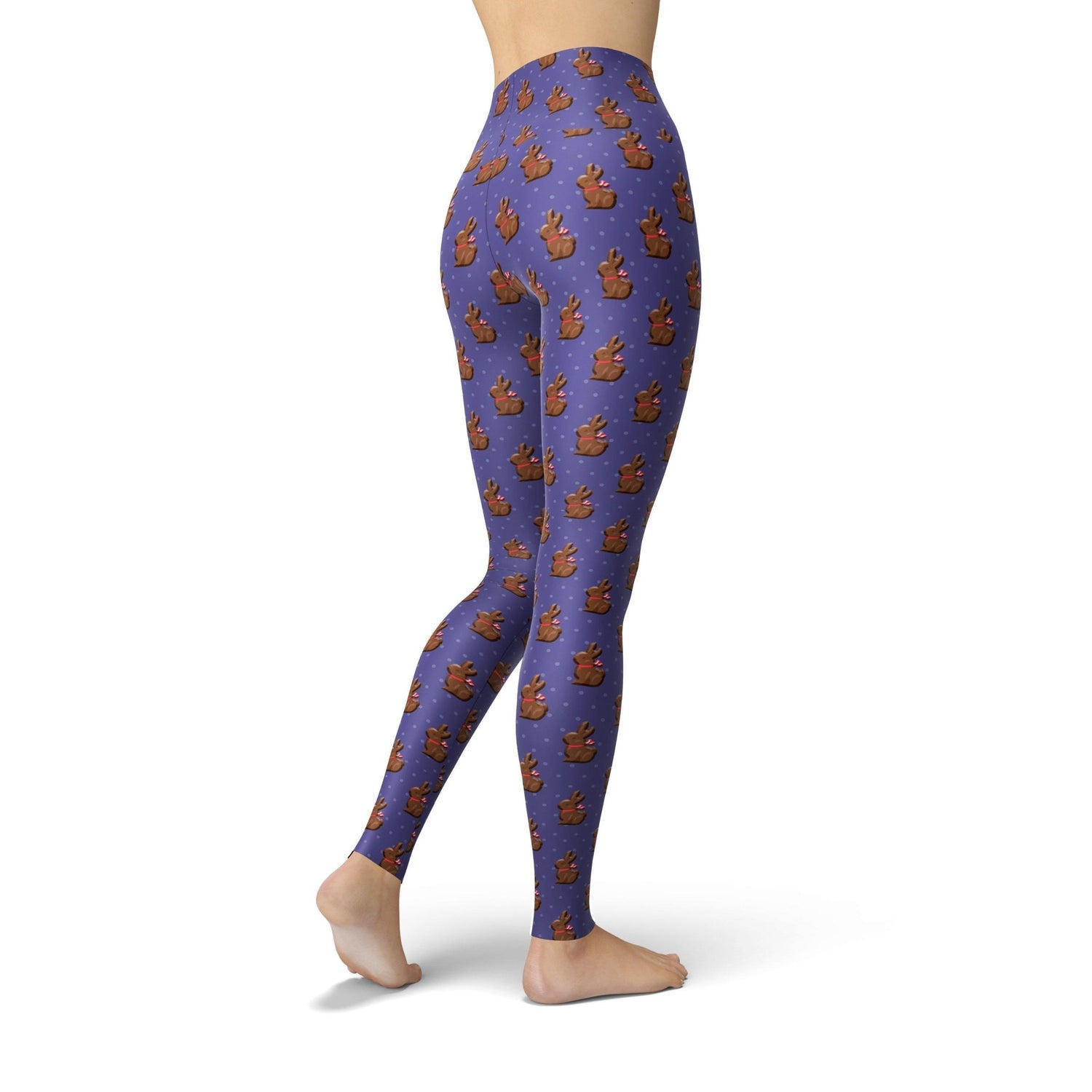 Purple Chocolate Bunnies Leggings feature an all-over design on soft lycra fabric for lasting comfort. Get ready for the Easter with a trendy new look.
