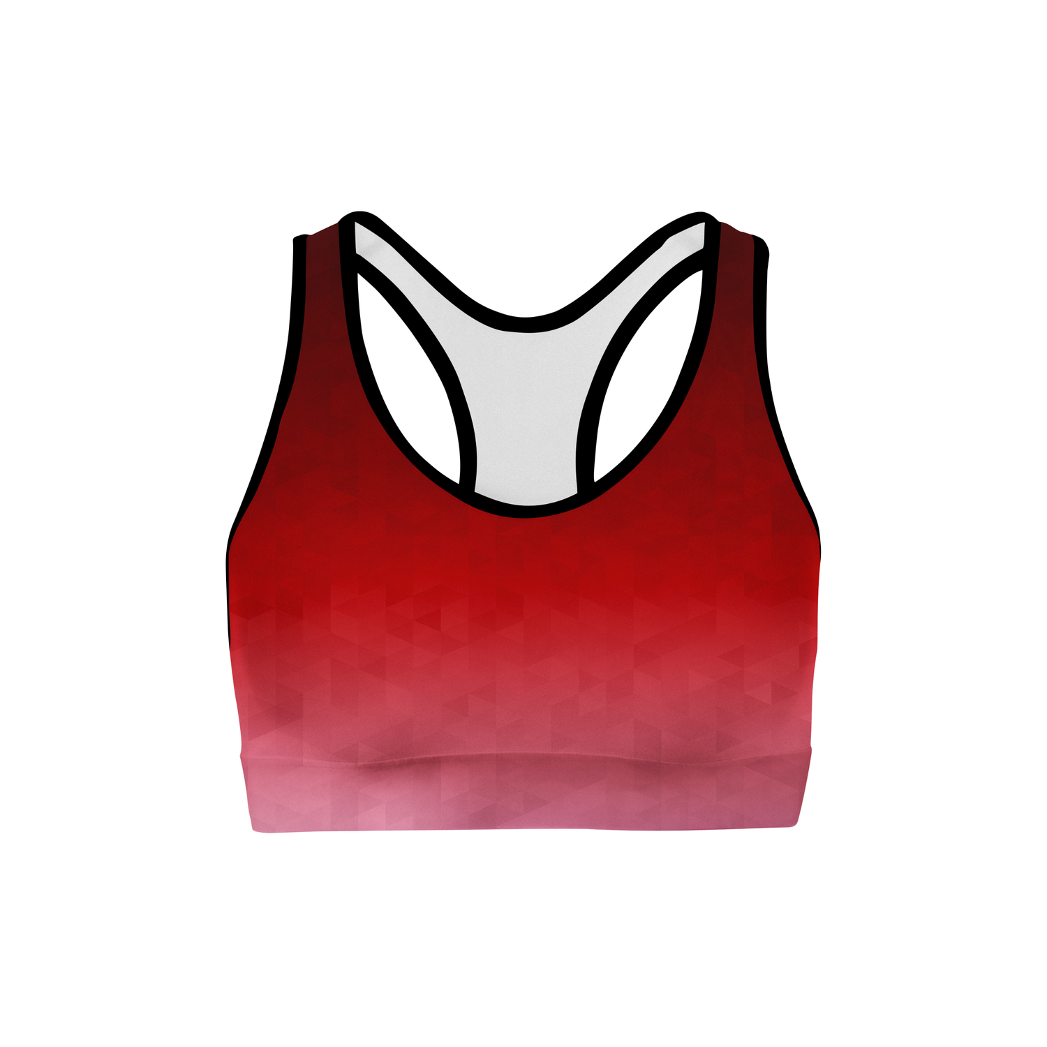 The Crimson Triangles Sports Bra helps you stay fit and focused. Lightweight Soft Lycra fabric keeps you cool, while a compression fit and four-way stretch build grant unrestricted movement. Moisture-wicking properties eliminate sweat, and the athletic racer back design with breath-ability.