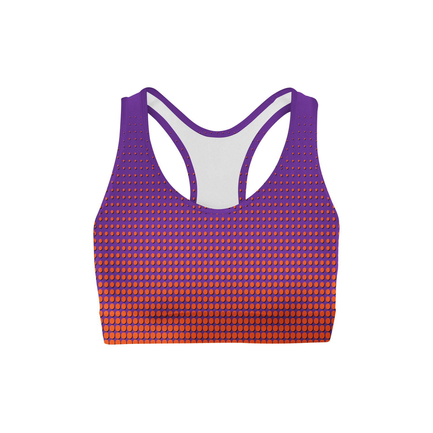 The Orange Dots Sports Bra helps you stay fit and focused. Lightweight Soft Lycra fabric keeps you cool, while a compression fit and four-way stretch build grant unrestricted movement. Moisture-wicking properties eliminate sweat, and the athletic racer back design with breath-ability.