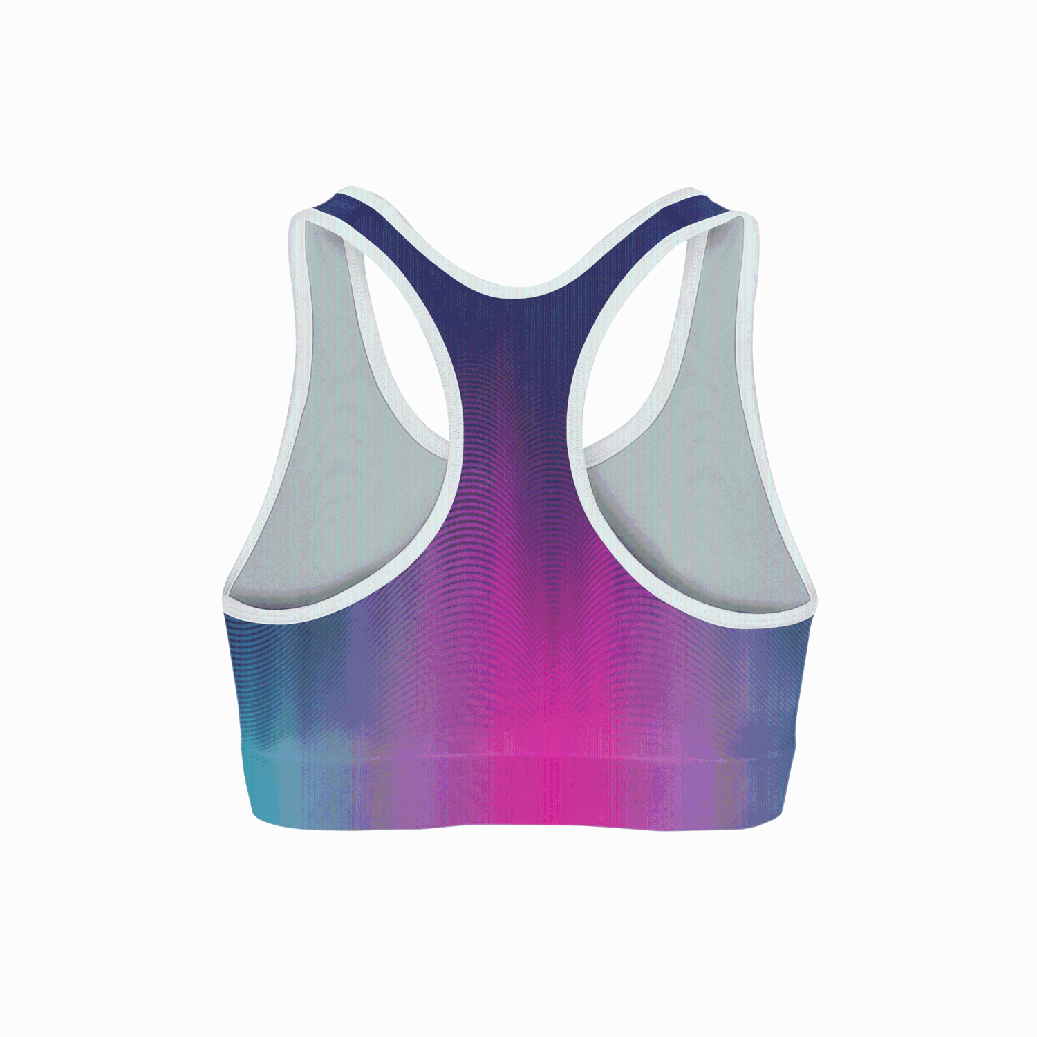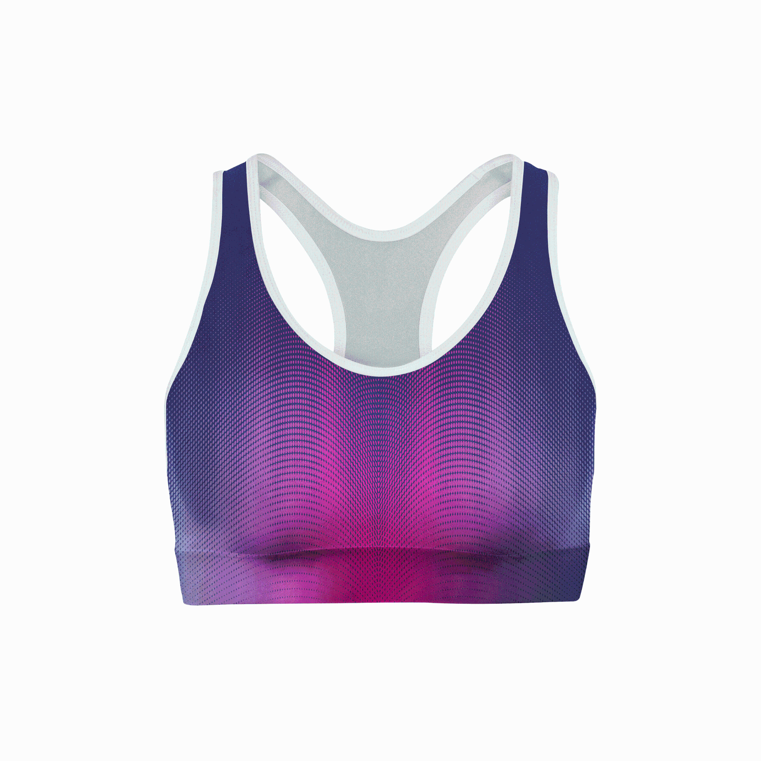 The Aurora Dots Sports Bra helps you stay fit and focused. Lightweight Soft Lycra fabric keeps you cool, while a compression fit and four-way stretch build grant unrestricted movement. Moisture-wicking properties eliminate sweat, and the athletic racer back design with breath-ability.