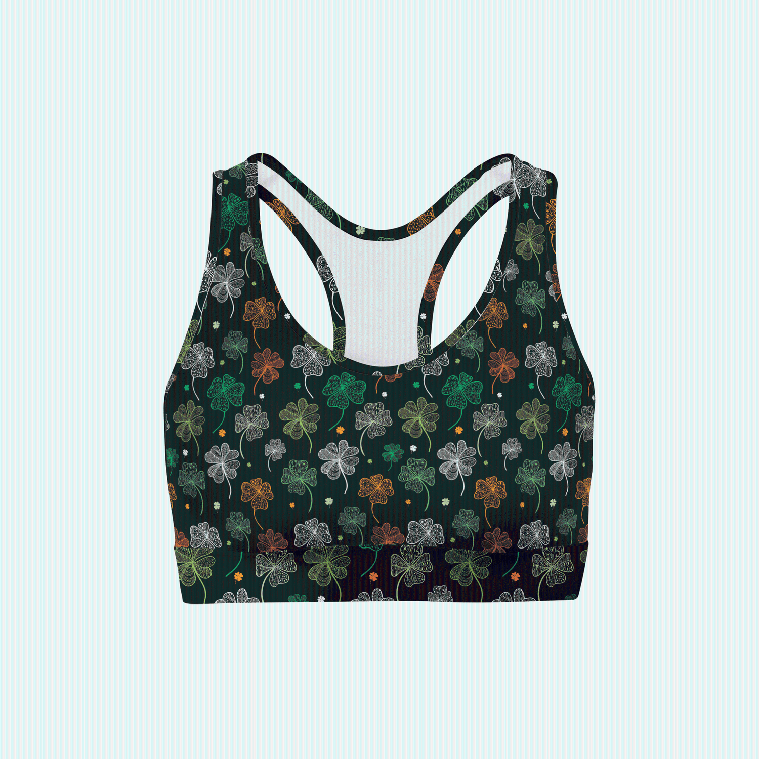 The Colored Clovers Back Color Sports Bra helps you stay fit and focused. Lightweight Soft Lycra fabric keeps you cool, while a compression fit and four-way stretch build grant unrestricted movement. Moisture-wicking properties eliminate sweat, and the athletic racer back design with breath-ability.