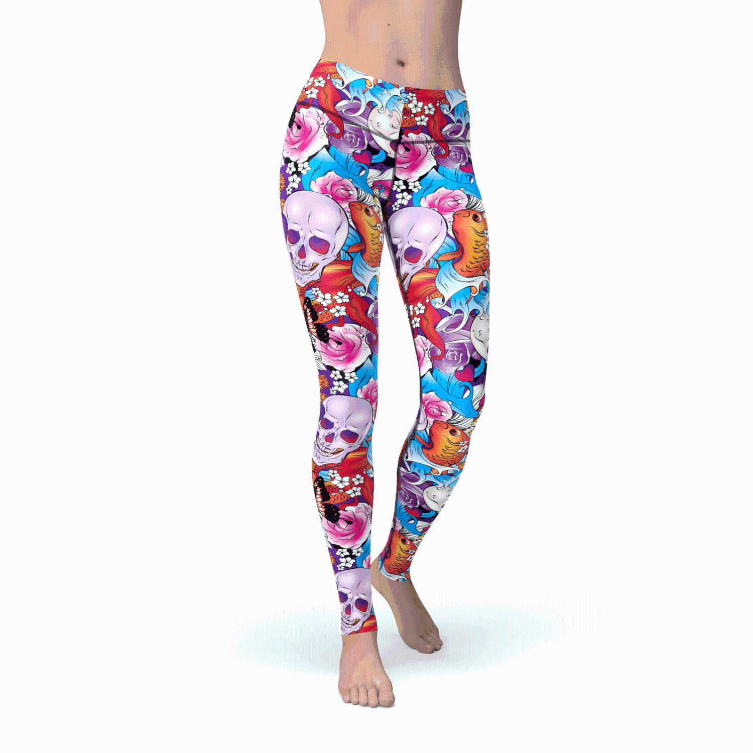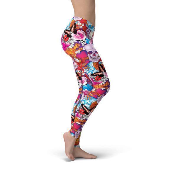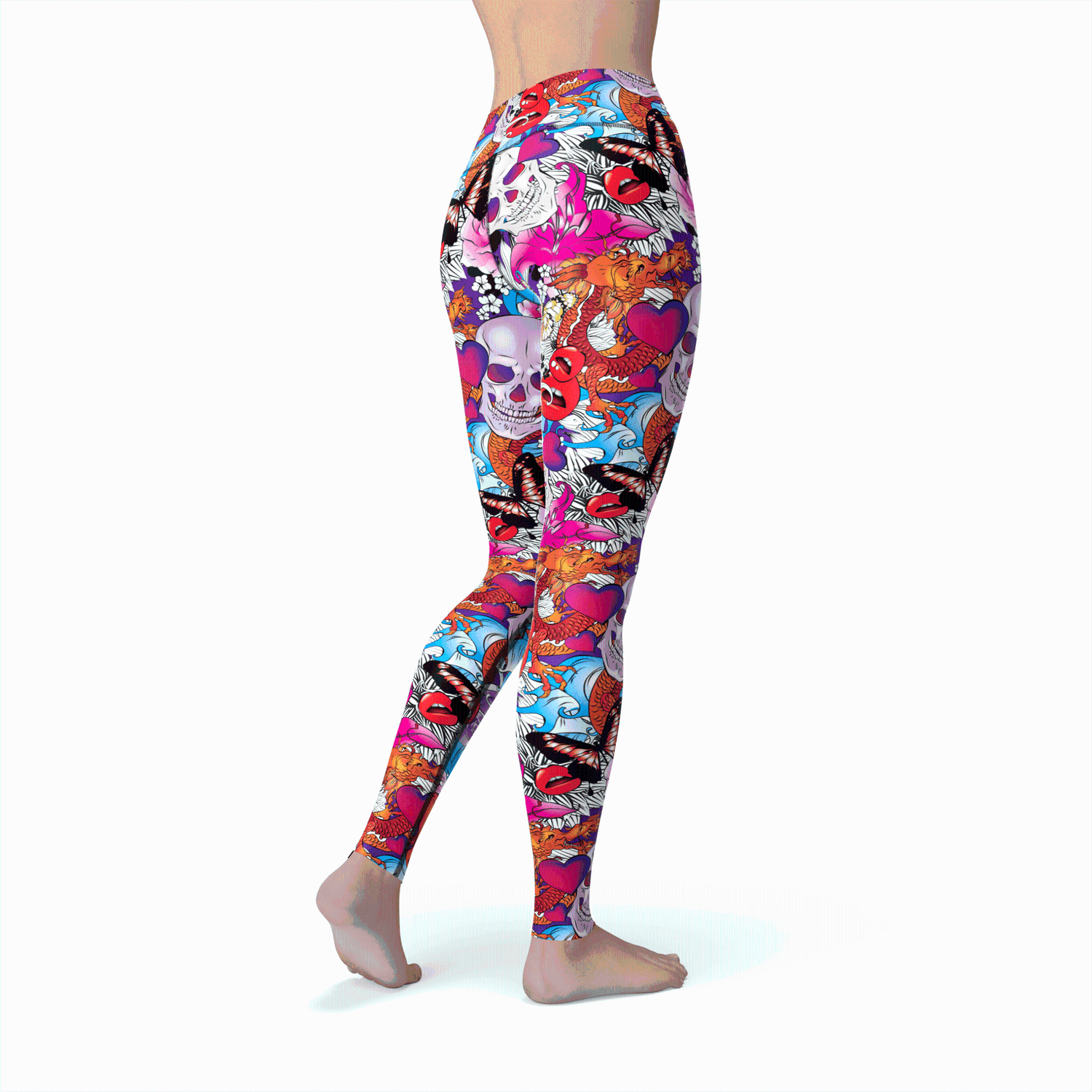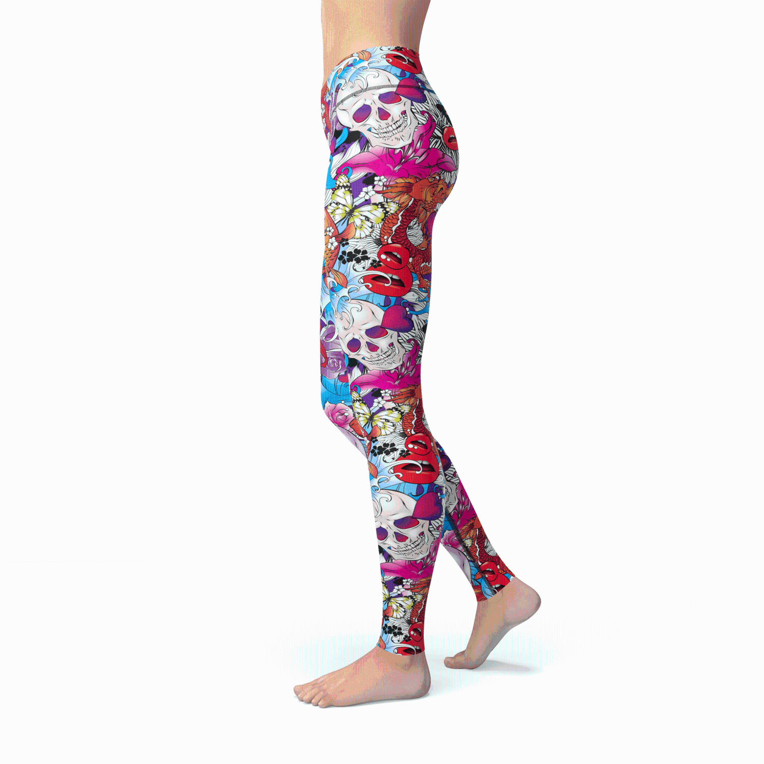 The Tattoo Skulls design on our high waist Soft Lycra legging is a solid start for any workout. You will look amazing no matter what you do, stretch, bend, and hit the streets in this move-easy essential.