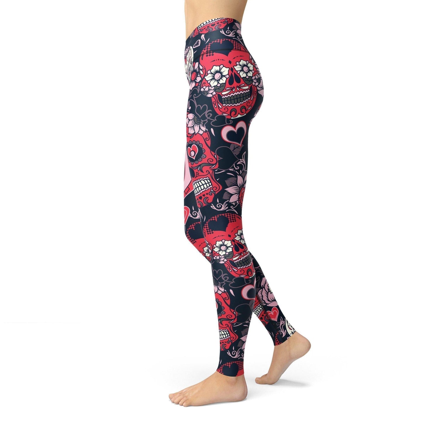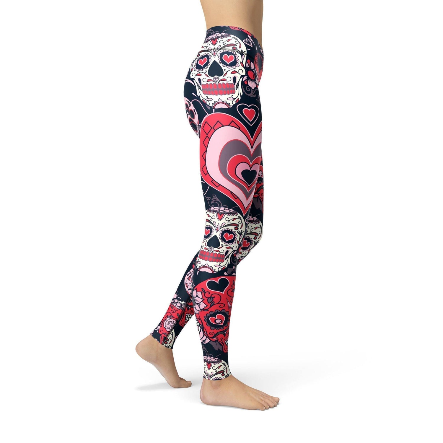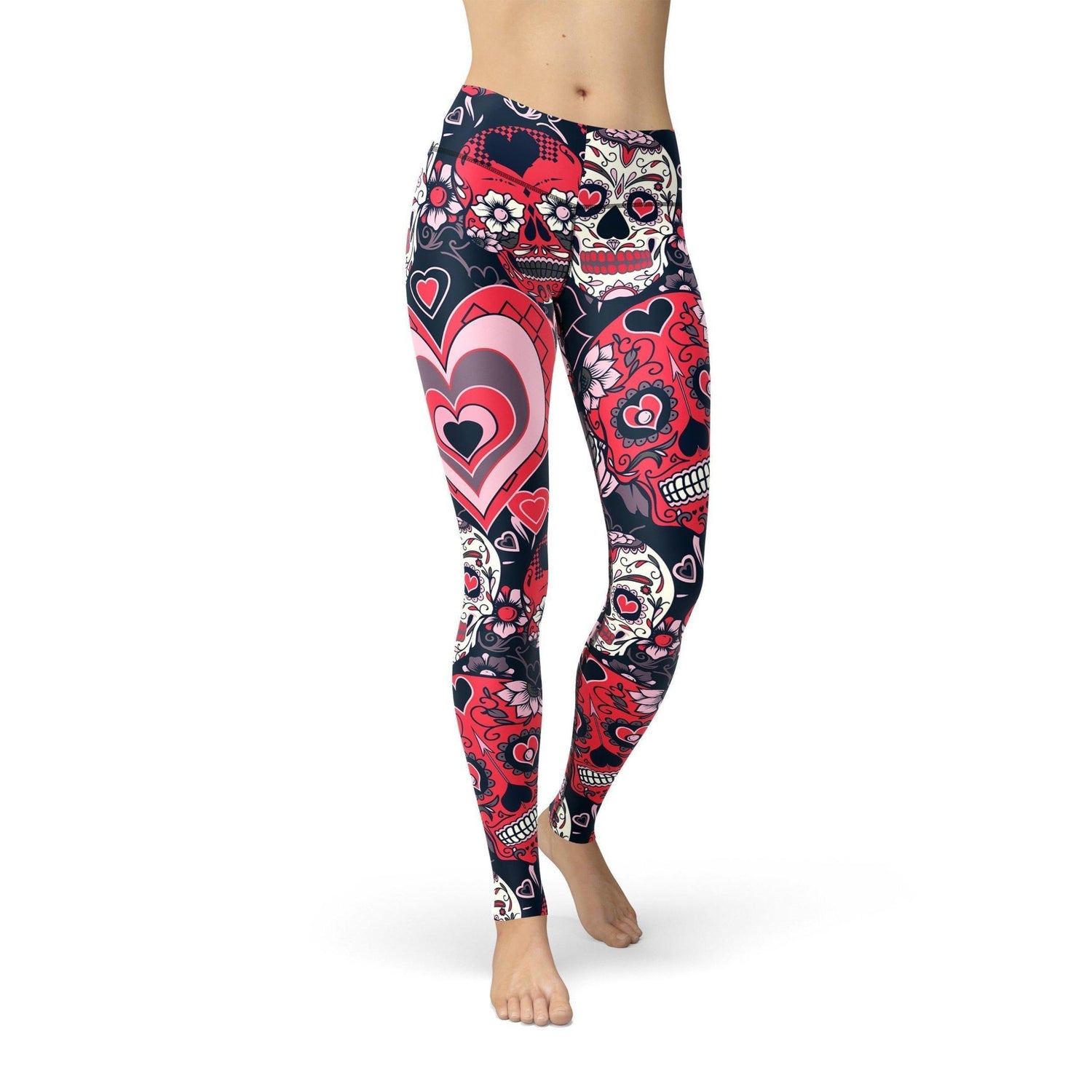 The Valentine Sugar Skulls design on our high waist Soft Lycra legging, is a solid start for any workout. You will look amazing no matter what you do, stretch, bend, and hit the streets in this move-easy essential.
