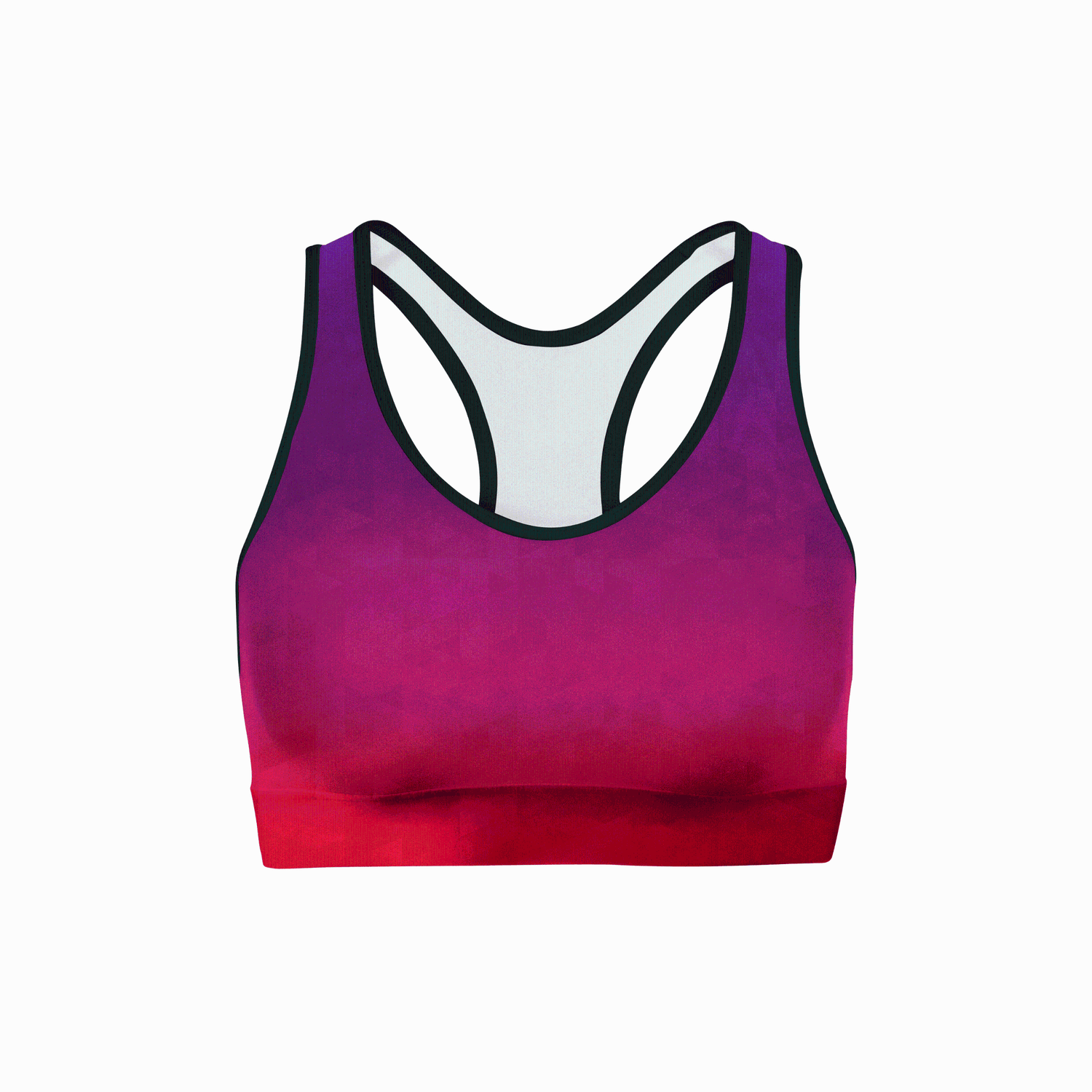 The Stained Triangles Sports Bra helps you stay fit and focused. Lightweight Soft Lycra fabric keeps you cool, while a compression fit and four-way stretch build grant unrestricted movement. Moisture-wicking properties eliminate sweat, and the athletic racer back design with breath-ability.