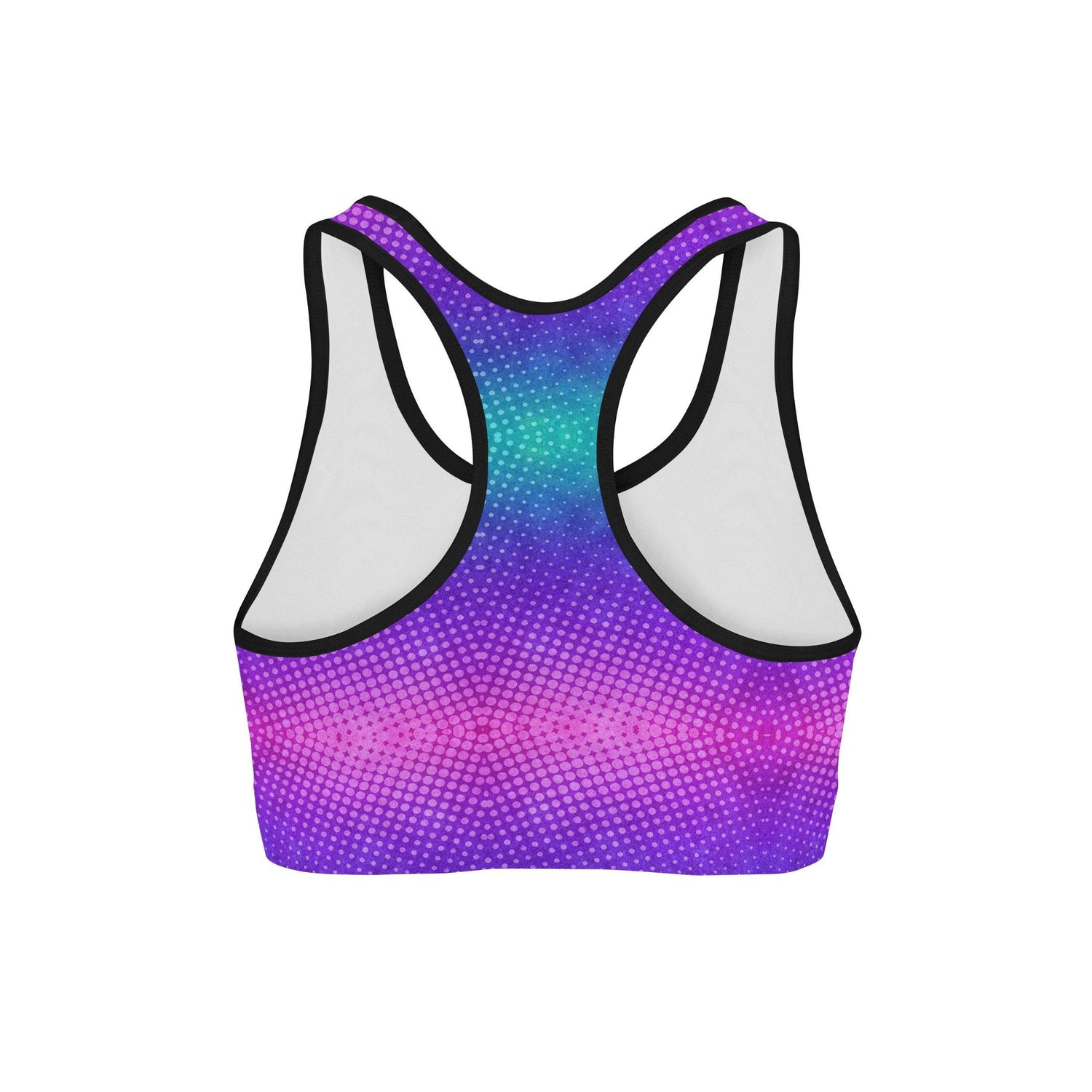 The Colorful Dots Sports Bra helps you stay fit and focused. Lightweight Soft Lycra fabric keeps you cool, while a compression fit and four-way stretch build grant unrestricted movement. Moisture-wicking properties eliminate sweat, and the athletic racer back design with breath-ability.