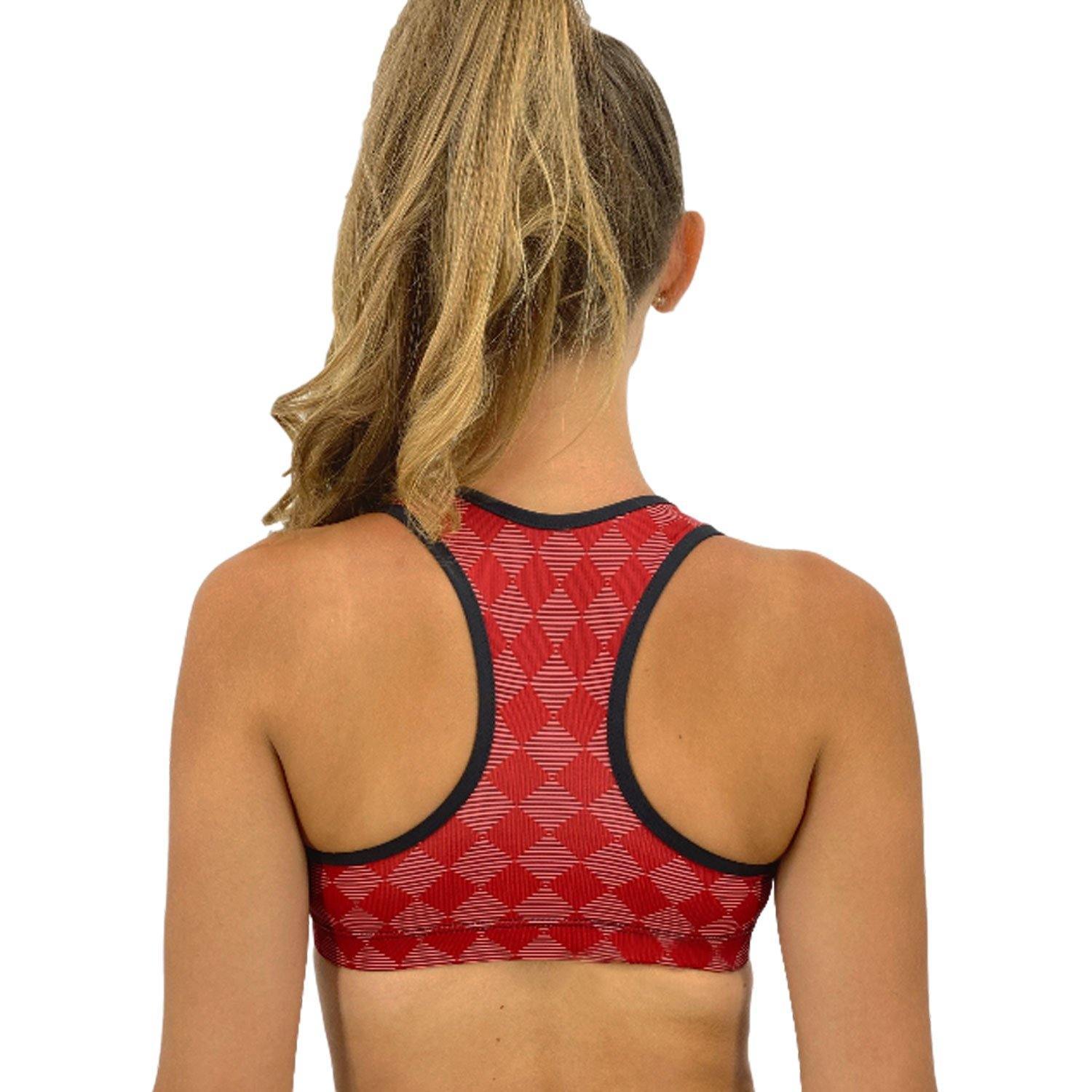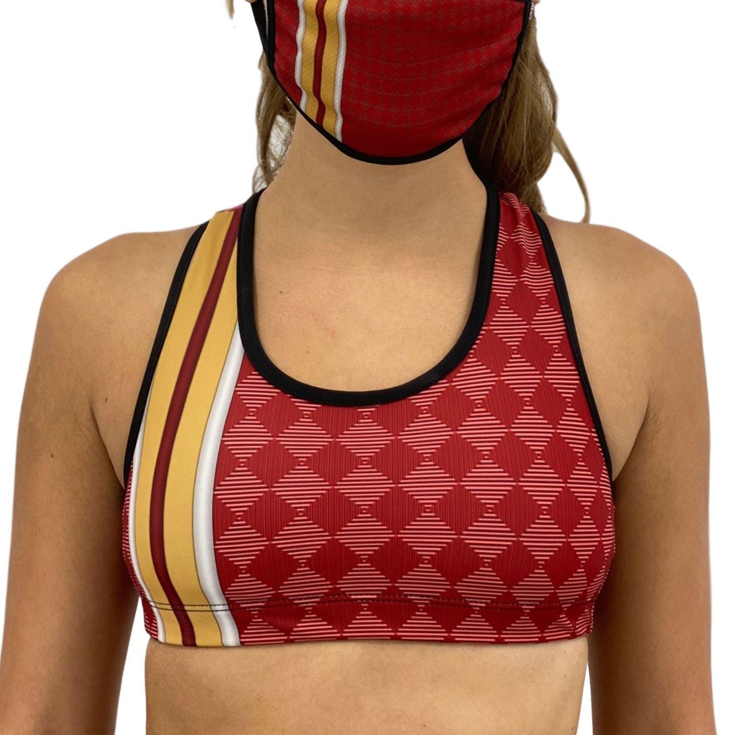 The San Francisco Football Sports Bra helps you stay fit and focused. Lightweight Soft Lycra fabric keeps you cool, while a compression fit and four-way stretch build grant unrestricted movement. Moisture-wicking properties eliminate sweat, and the athletic racer back design with breath-ability. Our football collection features a textured background that will scream team spirit all year around. Matching Face Mask sold separately.