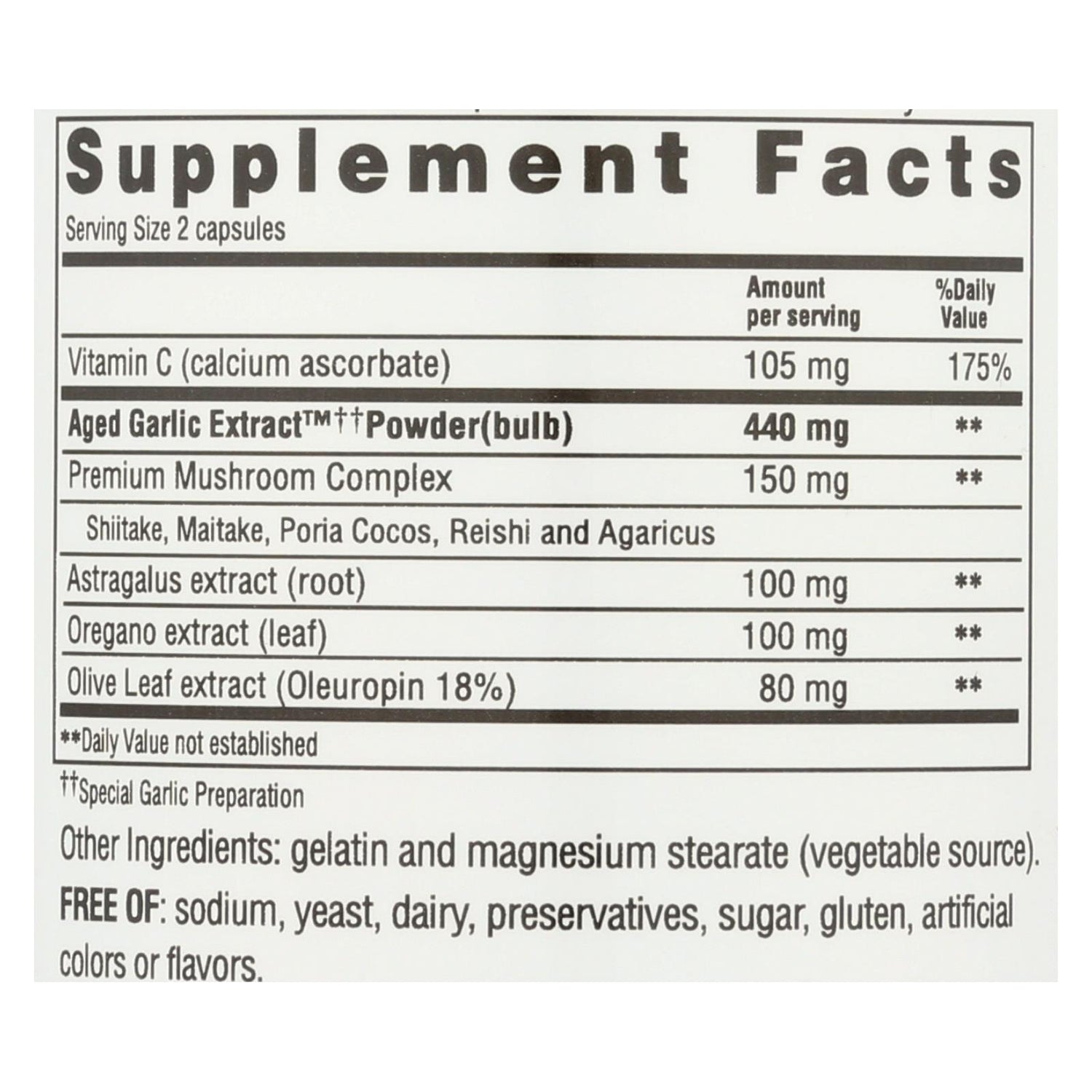 Kyolic immune formula 103 is an odorless organic garlic supplement specially formulated with garlic extract, vitamin c, astragalus and mushrooms to help support healthy immune function. One bottle of kyolic contains 200 capsules that are produced without any artificial colors, flavors, preservatives or sugar.
