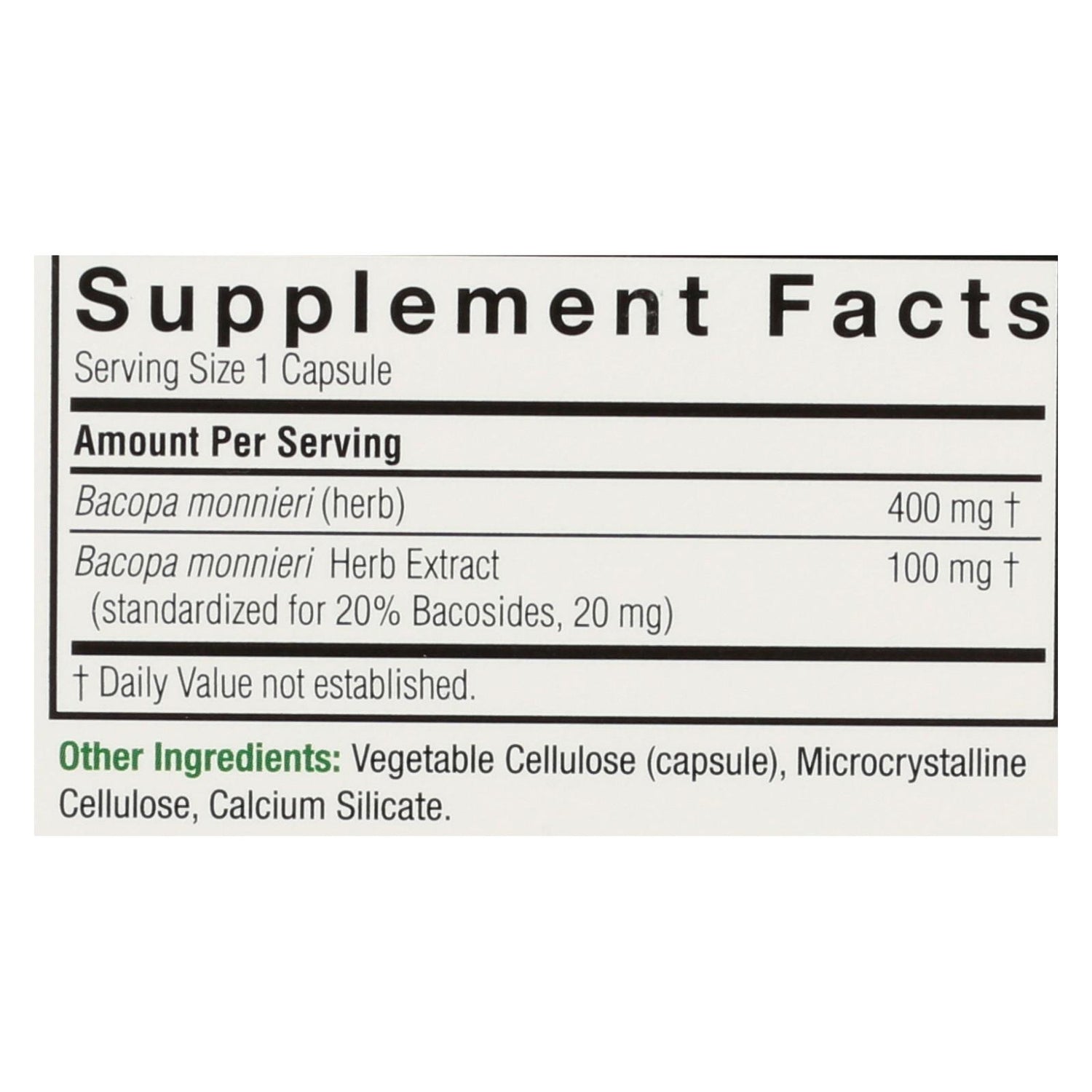 Nature's Answer - Bacopa - 500 Mg - 90 Veggie Caps