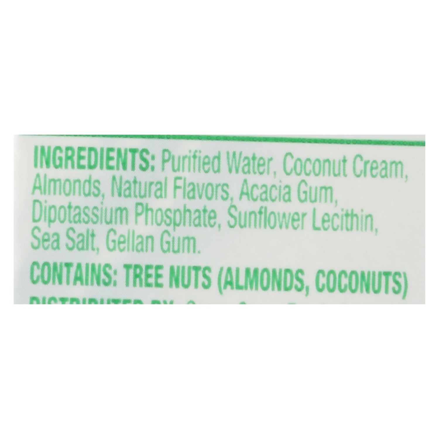 ingredients : purified water;coconut cream;almonds;natural flavors;acacia gum;dipotassium phosphate;sunflower lecithin;sea salt;gellan gum