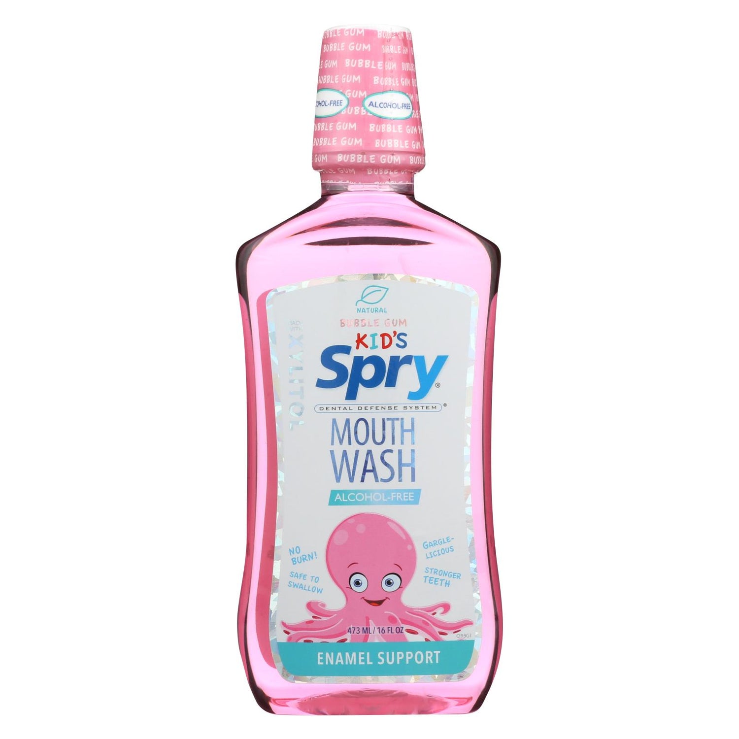 Spry alcohol-free kid's enamel support bubble gum mouthwash rinses the hard-to-reach places, ensuring your child’s mouth is fresh and clean without that uncomfortable burn. Formulated with children in mind, it is safe to swallow. Added calcium supports teeth and special herbal blends improve overall oral health. Spry kid’s alcohol-free mouthwash also features xylitol, a natural ingredient that improves oral health. Clinical studies have shown that xylitol inhibits bacteria from sticking to teeth and gums. Kids will love the bubble gum flavor. Spry kid’s alcohol-free mouthwash is paraben-free and uses only natural plant-based coloring agents. Includes one 16 oz. Bottle of spry alcohol-free kid's enamel support bubble gum mouthwash. Innovative dental professionals around the world are talking to their patients about the spry dental defense system because of its proven oral health benefits.