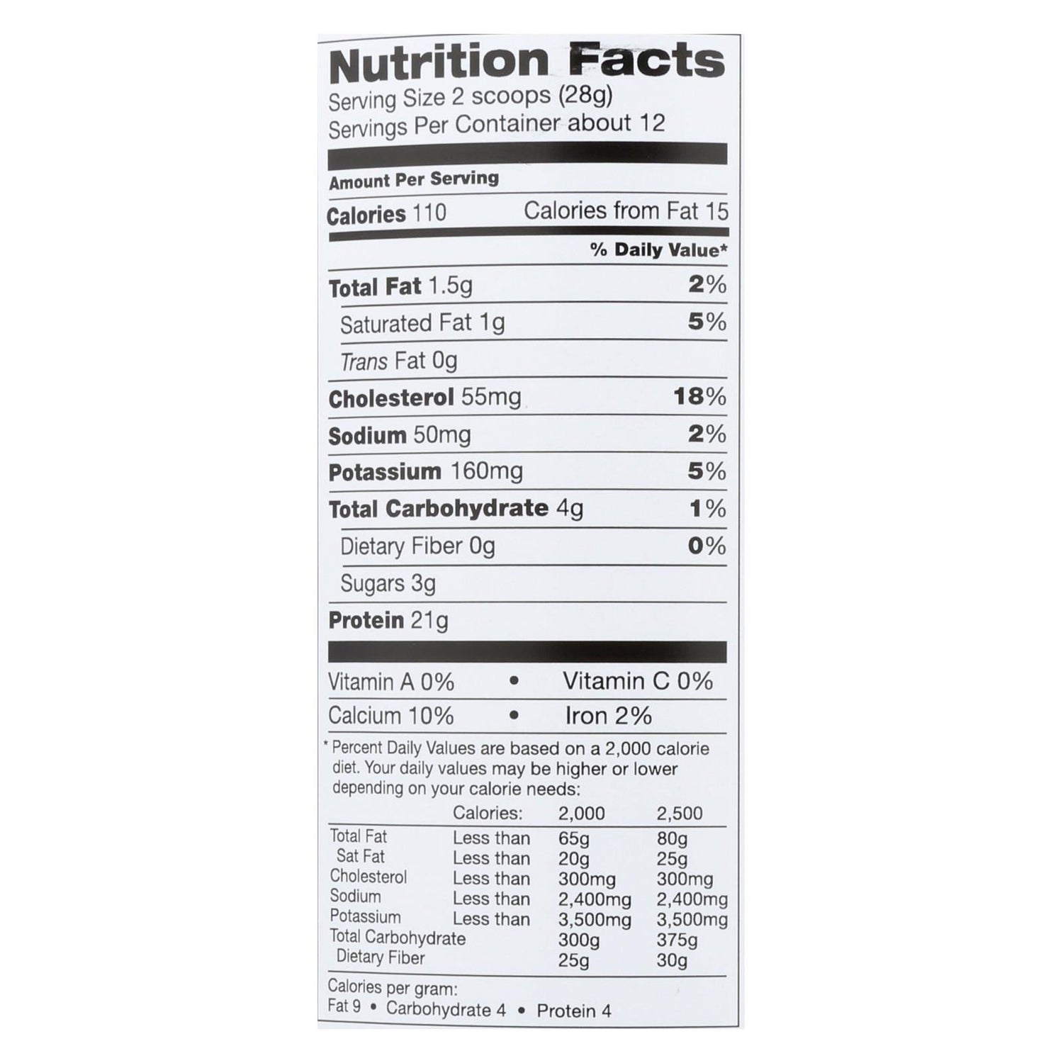 Tera'swhey whey bourbon vanilla protein is certified gluten-free and kosher-dairy. Every 12 oz. Canister of bourbon vanilla protein is made with grass-fed, rbgh/bst-free milk. Each serving provides 21 g. Of protein and 10% of the daily recommended value of calcium. See nutrition facts panel for allergens.