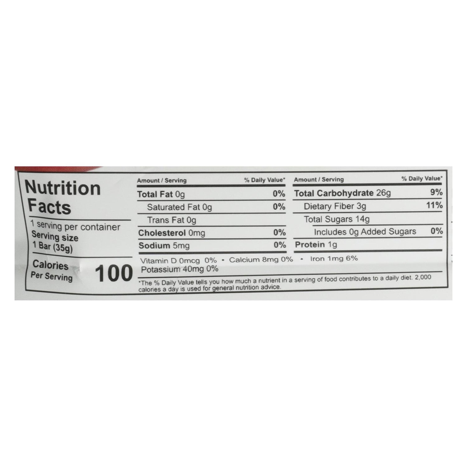 That's it apple + blueberry fruit bar is all natural and raw, made solely from apples and blueberries, with no sugar added. Each 1.2 oz. Bar contains 100 calories, 19 g. Of sugar and 4 g. Of dietary fiber. Our fruit bar is certified gluten-free, kosher-parve, natural food certified and non-gmo project verified.
